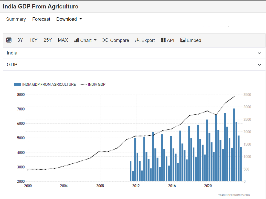 With greater autonomy granted to enterprise managers, the welcoming of foreign investments (<1% of total investment in 1979 —> 18% in 1994), economic liberalization and strong export growth during the same period, led to the economic transformation in China.On the other hand, economic liberalization in India transformed the life of the urban Indian but left the rural Indian behind. India’s GDP increased at 7-9% starting in the mid-1990s, but agricultural growth averaged only 2.5-3.5%. The sector’s contribution to GDP declined from 23% in 2003-04 to about 14.6% in 2018, without a corresponding reduction in the population dependent on farming and related activities. The ratio of farm to non-farm incomes has worsened from 1:3 to 1:5, resulting in increasing rural indebtedness and marginalisation.