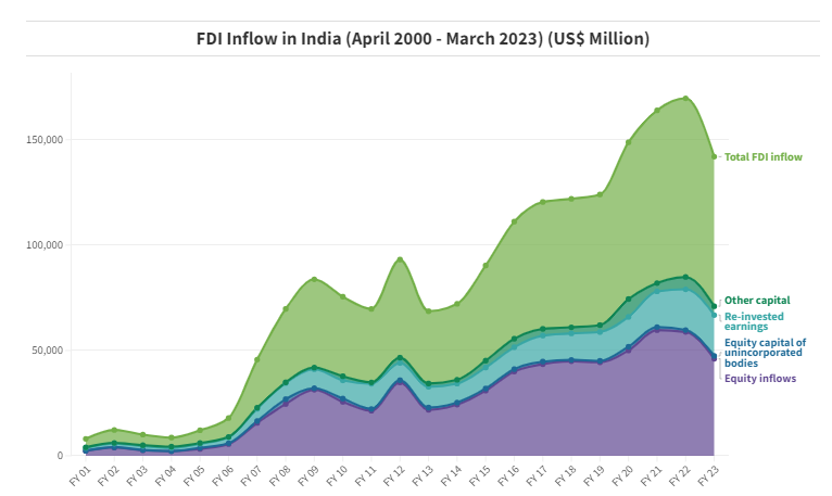 Being an Ally: As much as the FDI inflow hit a peak in FY22, there was a dip in FY23 and this moves along the lines of being an ally. Since Russia’s invasion of Ukraine, the world split itself into different categories - with Ukraine, with Russia and impartial. The for and against are not just slated as a vote at the United Nations General Assembly (UNGA) but also by providing military assistance or even imposing sanctions. I mean, if you’re my friend - you’re either with me or not.